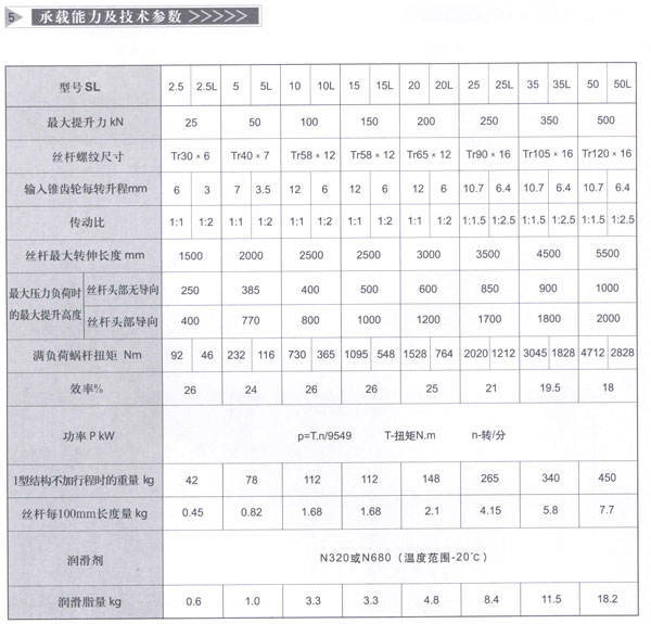 SL錐齒輪升降機(傘齒輪絲桿升降機)主要特點有:效率高、使用壽命長、容易調整減速比。同時具有結構緊湊、體積小、重量輕、動力源廣泛、無噪音、安裝方便、使用靈活、功能多、可靠性高等許多優點。具有提升、降落、推進、翻轉等多功能、能按一定程序準確地控制調整提升或推進的高度。可以用電動機或其他動力直接帶動。也可以手動。最高輸入轉速500r/min,最高提升速度2.7m/min。有不同的結構型式方式,提升高度按用戶的要求制造。該裝置可自鎖。