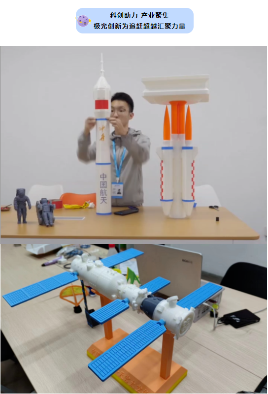 飛天夢,極光夢!極光創新小伙伴在獲悉神舟十五號載人飛船即將發射之際,極光創新3D打樣團隊利用工業級A8S/A9Pro等工業級3D打印設備,花費3天3夜不間斷打印,終于在神舟十五號飛船發射之際,完成了空間站組合體的打印及裝配工作,用于祝賀我國航天產業取得的諸多技術性突破,同時也祝賀祖國在空間站建設方面實現了超越傳統空間站技術水平的高速發展。