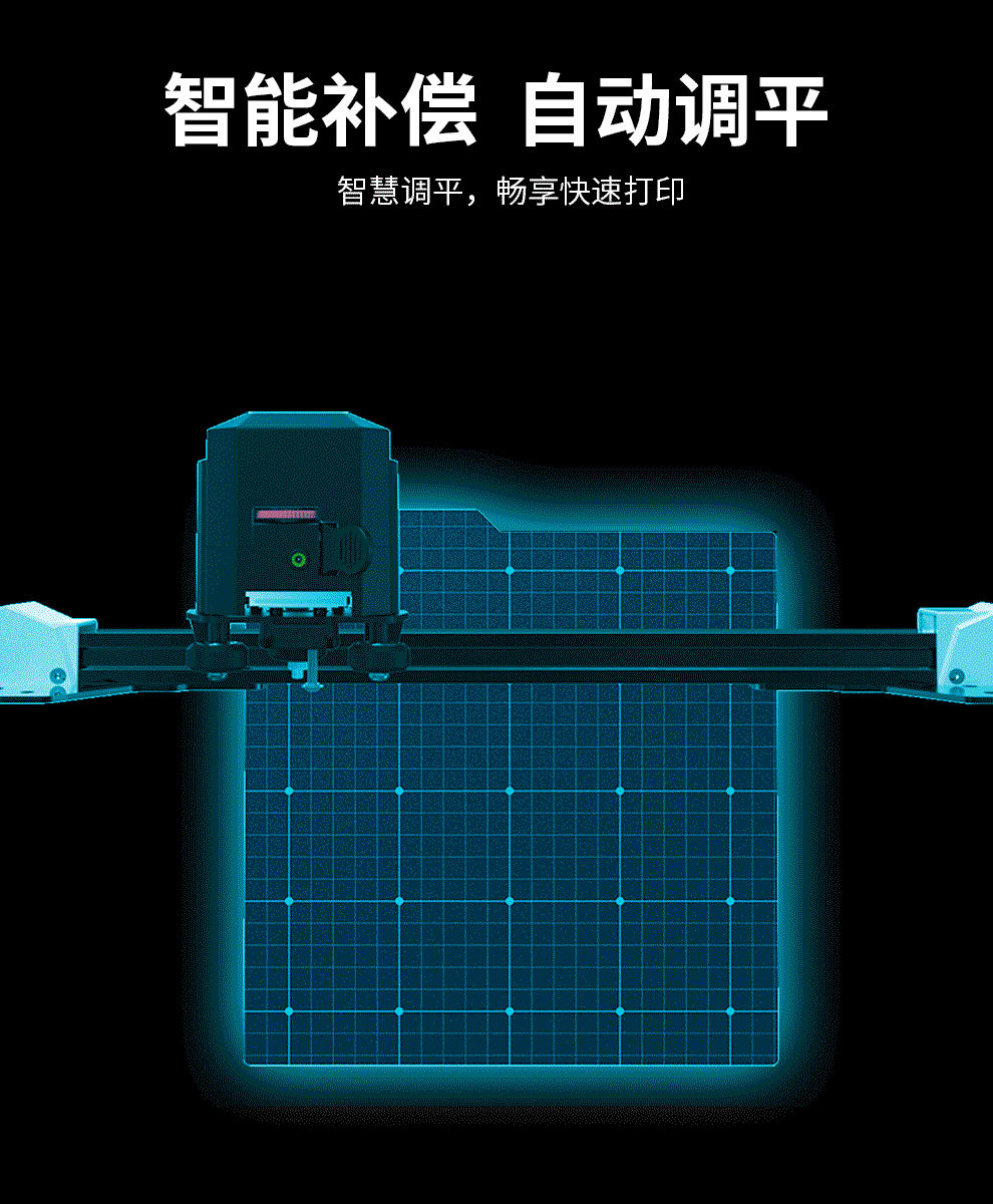 為了讓用戶擁有良好的用機體驗,即刻享受3D打印帶來的樂趣,R1搭載了全新的非接觸式智能補償調(diào)平系統(tǒng),25點快速調(diào)平。