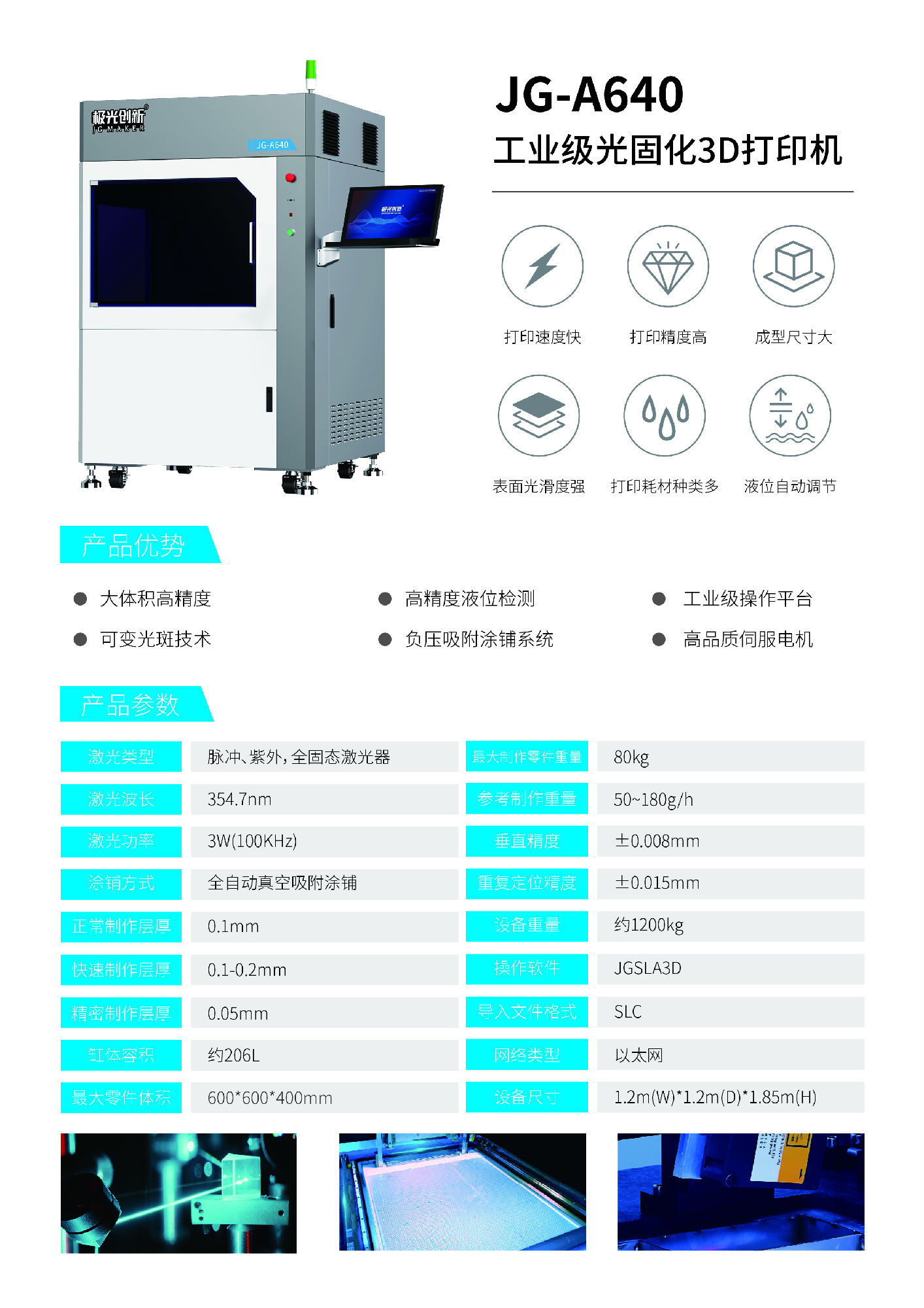 極光創新工業級SLA 3D打印機具備高精度、大尺度的特點,能夠生產具有精細特征、高精度、各向同性的原型和最終用途部件,在醫療保健行業占據主導地位。