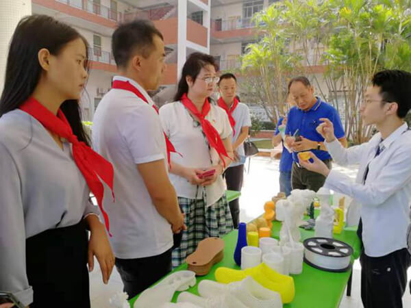 鎮(zhèn)田小學(xué)校長(zhǎng)等領(lǐng)導(dǎo)參觀了解極光爾沃3D打印機(jī),咨詢并了解3D打印的行業(yè)現(xiàn)狀應(yīng)用,以及了解3D打印在校園的發(fā)展情況。隨行領(lǐng)導(dǎo)對(duì)3D打印模型十分好奇,表示3D打印的物品十分精致,和傳統(tǒng)的制造業(yè)工藝不相上下,機(jī)器自動(dòng)化完成打印。生活小禮盒,擺飾等受到了喜愛,得到了一致好評(píng)。