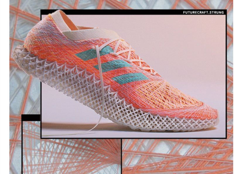 阿迪達(dá)斯發(fā)布了一則新款預(yù)告消息:高端鞋面制作技術(shù)strung,結(jié)合高端鞋中底光固化3D打印制作技術(shù),打造出第一款數(shù)據(jù)編碼裝備,突破跑鞋極限,重塑未來(lái)。