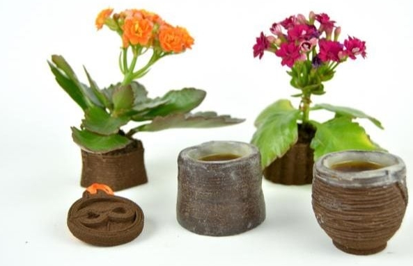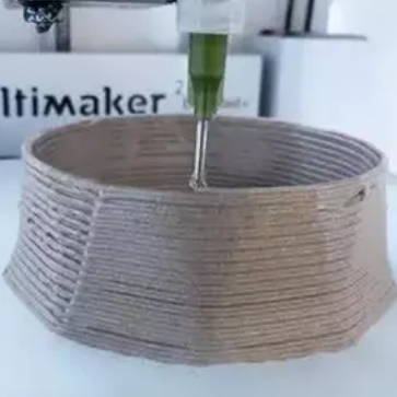 3D打印咖啡渣材料是將咖啡渣與黃原膠和纖維素膠(食品中常見(jiàn)的植物增稠劑)等成分混合后而形成的3D 打印的混合物。然后,利用改良過(guò)的3D打印機(jī)通過(guò)層層堆積制作成一個(gè)個(gè)堅(jiān)固耐用的作品。