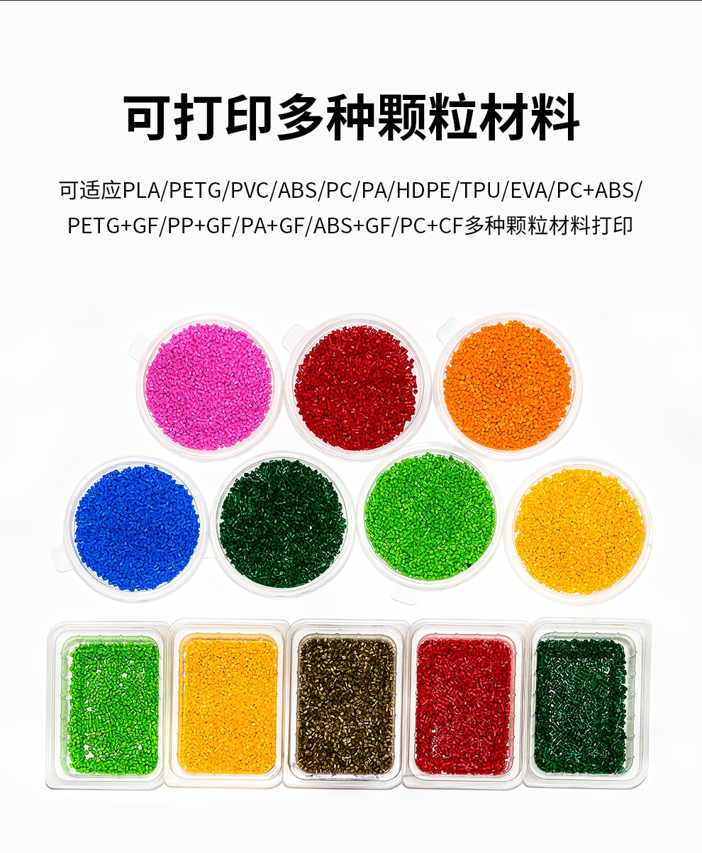 1.8米的超大打印尺寸,適配多種顆粒料耗材,具備更強(qiáng)大的塑造能力