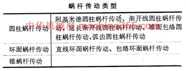 類型 蝸桿傳動有多種類型﹐如表 蝸桿傳動類型 所示。