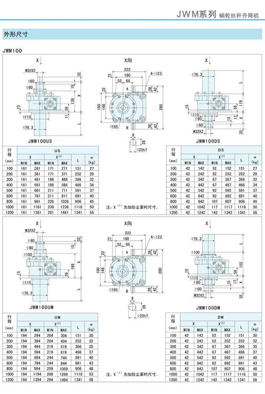 減速機|蝸輪絲桿升降機-JWM升降機100外形尺寸圖-海洋傳動