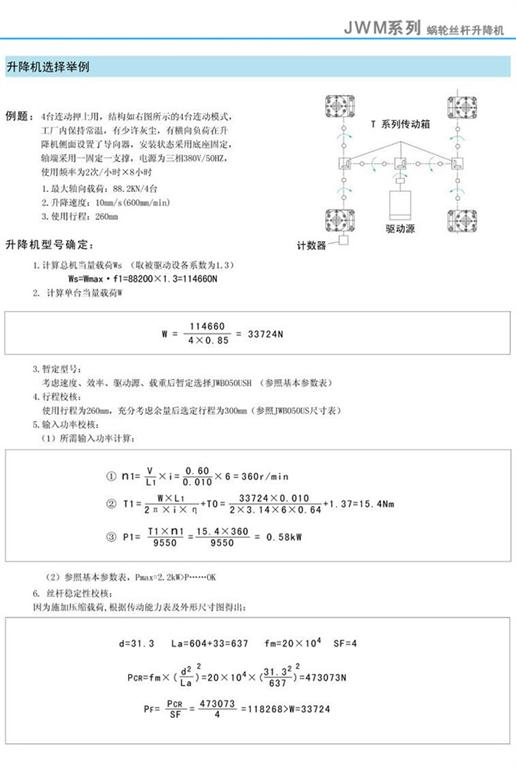 減速機|蝸輪絲桿升降機-JWM蝸輪絲桿升降機選擇舉例-海洋傳動