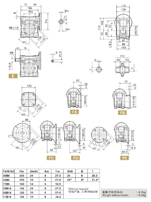 NMRV蝸輪減速機:型號:025 030 040 050 063 075 090 105 110 130 150其中025-105為鋁合金外殼,110-150為鑄鐵外殼;減速比:1/5 1/7.5 1/10 1/15 1/20 1/30 1/40 1/50 1/60 1/80 1/100,其組合減速比可高達1/5000. 結構特點