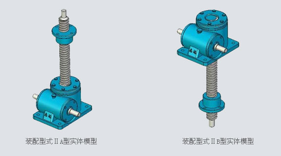結(jié)構(gòu)形式分絲桿軸向移動和螺母軸向移動,安裝形式分A和B裝,按使用特點分壓力和提升。如下圖: