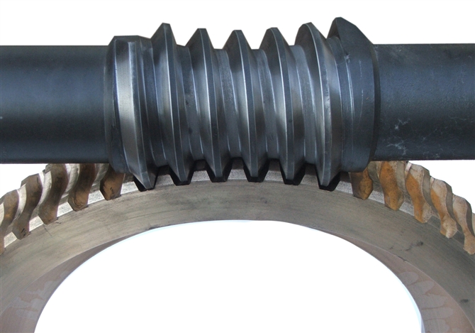 從外形上看,蝸桿類似螺栓,蝸輪則很象斜齒圓柱齒輪。工作時,蝸輪輪齒沿著蝸桿的螺旋面作滑動和滾動。為了改善輪齒的接觸情況,將蝸輪沿齒寬方向做成圓弧形,使之將蝸桿部分包住。這樣蝸桿蝸輪嚙合時是線接觸,而不是點接觸。