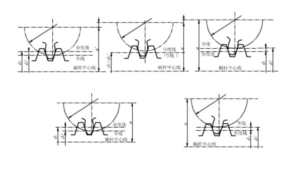 2)變位前后,蝸桿傳動的中心距不變(a "=a),蝸輪齒數(shù)發(fā)生變化(z2"≠z2),如圖9-8d、e所示,z2" 計算如下: